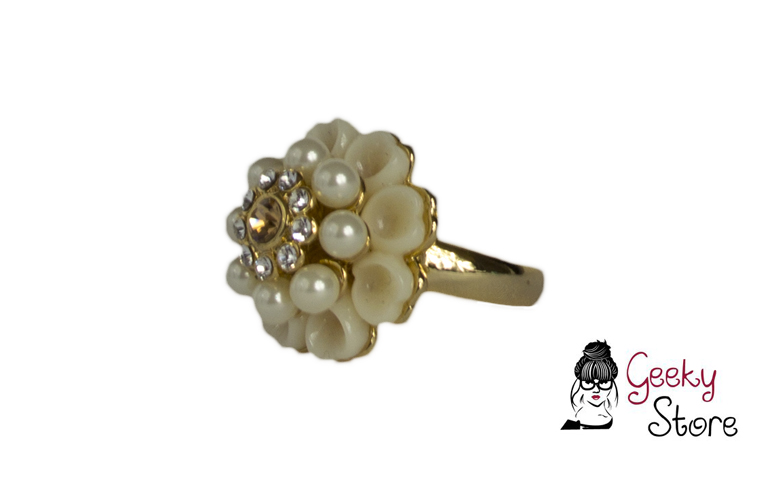 Anillo Flor Perlas cantidad