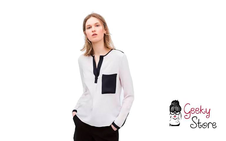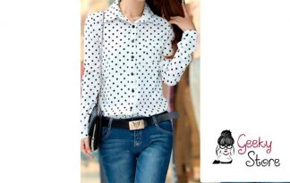 Blusa Casual Blanca con Puntos Negros