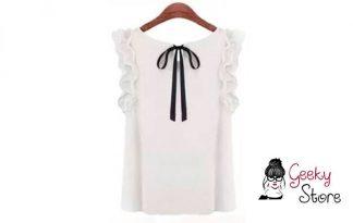 Blusa Casual Blanca con Lazo Negro