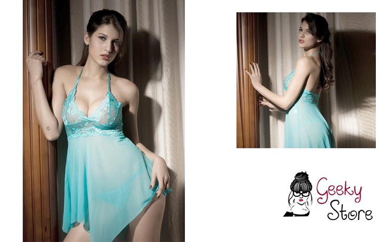 Lencería Finos Acabados Encaje Flores Turquesa