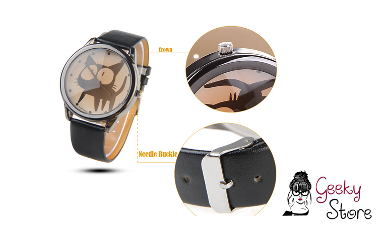 Reloj de Muñeca Diseño Gato Brazalete Negro
